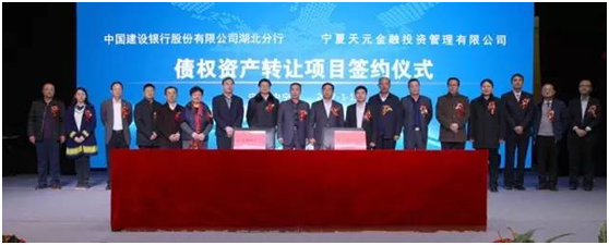 中国建设银行股份有限公司湖北分行副行长石章振、宁夏天元锰业集团董事长助理兼宁夏天元金融投资管理有限公司总经理代晓勇,分别代表标的转让方和标的受让方在签约文件上签字。