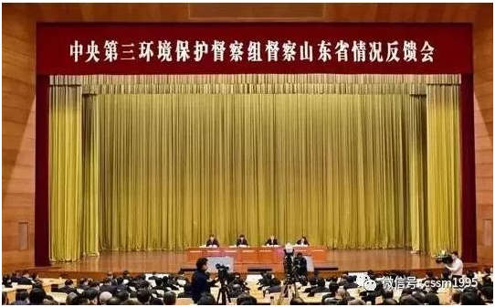 ▲中央第三环境保护督察组向山东省反馈督察情况