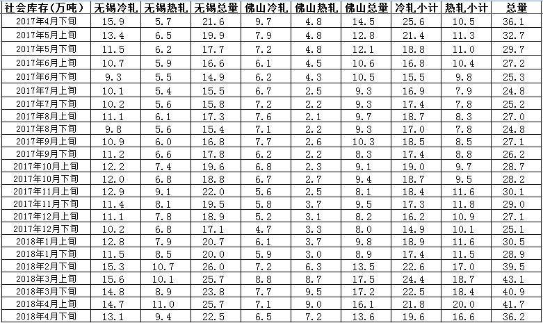 从本次数据来看,4月底环比4月中旬库存下跌5.6万吨至36.2万吨;另外,无锡电子盘可交割库存量下跌1.9万吨至4.5万吨,不包含于统计范围内。短期不锈钢库存高压态势减弱,但整体库存仍处于历史中高位置,去库存较为明显的主要原因是期间内伦镍的一波暴涨行情促使下游采购节奏加快,但随着伦镍的下跌下游采购节奏又放缓。