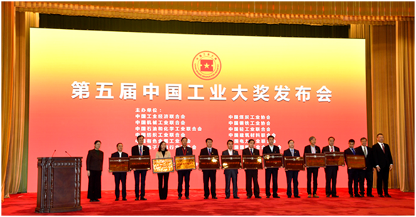 12月9日上午,第五届中国工业大奖发布会在北京人民大会堂举行。第十届全国人大常委会副委员长顾秀莲、中国工业经济联合会会长李毅中、原航天航空工业部部长林宗棠、国资委原监事会主席朱蕤、原国家食品药品监督管理总局副局长孙咸泽、工业和信息化部总经济师王新哲等领导出席发布会并为获奖企业颁奖。李毅中在发布会上做主旨讲话,中国工业经济联合会执行副会长荣剑英主持发布会。
