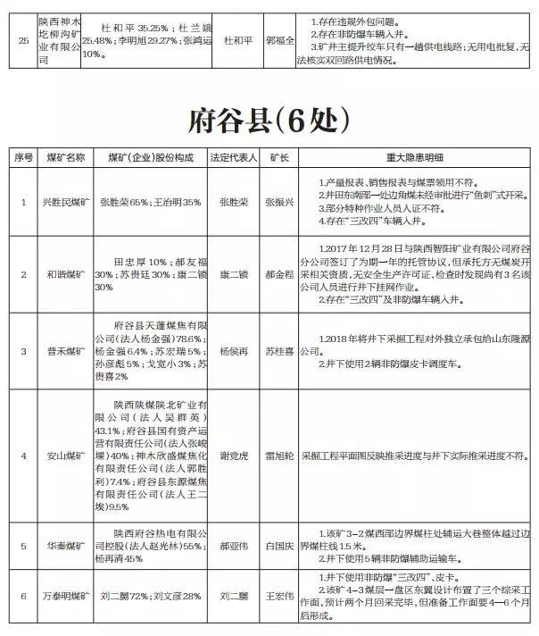 全市煤矿安全生产大排查大整治第一批重大隐患挂牌督办企业共计44处,其中:榆阳区9处、横山区4处、神木市25处、府谷县6处,涉及产能6680万吨/年。根据《国务院关于预防煤矿生产安全事故的特别规定》(国务院令第446号)第十九条之规定,现予公告。