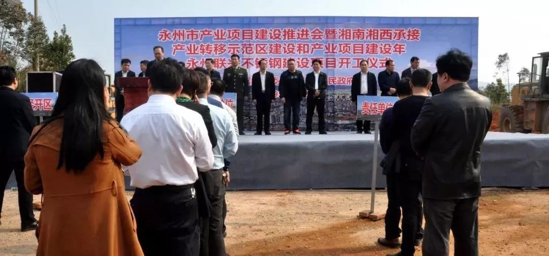 【中国铁合金网讯】日前,在湘南湘西承接产业转移示范区暨永州市2019年产业项目第二次集中开工仪式活动中,蓝山县集中开工盛海源纺织建设项目和联兴不锈钢项目,总投资3亿元。县委书记秦志军出席并宣布项目正式开工。