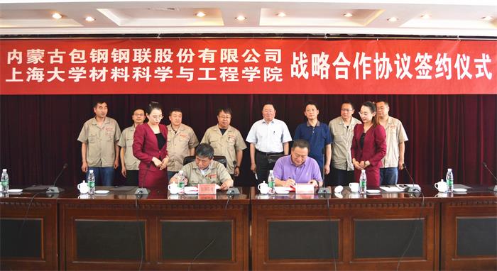 【中国铁合金网讯】5月27日下午,包钢股份和上海大学材料科学与工程学院战略合作协议签约仪式在包钢宾馆举行。包钢(集团)公司副总经理、包钢股份董事长李德刚,上海大学材料科学与工程学院院长董瀚出席签约仪式。包钢股份副总经理邹彦春及公司技术专家、有关部门负责人参加仪式。