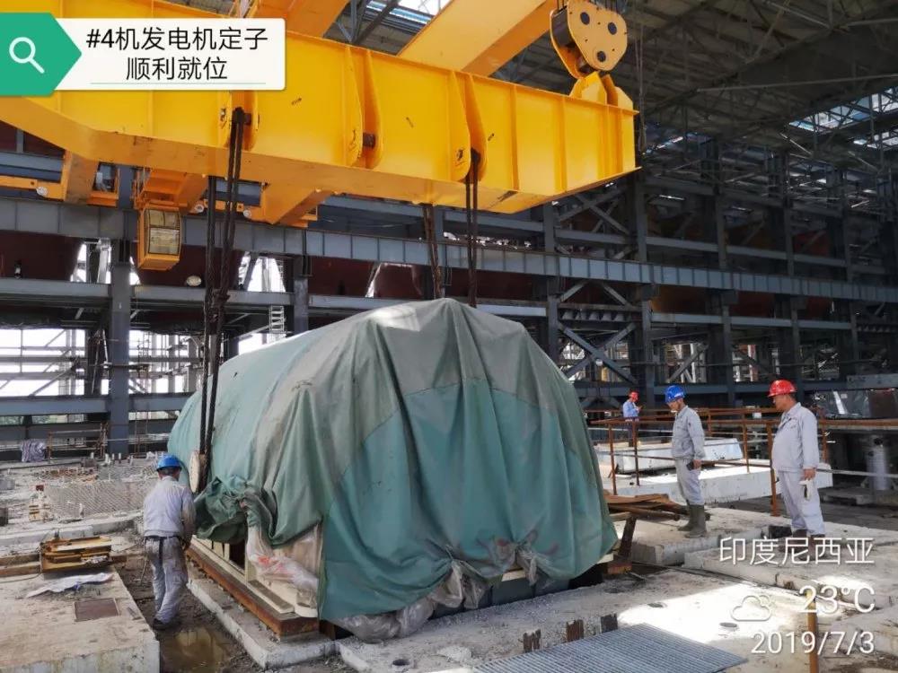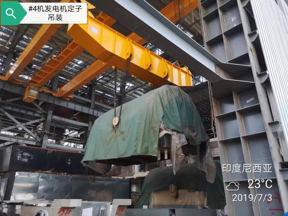 【中国铁合金网讯】7月3日11时22分,西北火电印尼2×135MW燃煤项目#4机组发电机定子顺利吊装就位,为整个汽轮发电机组的安装打下坚实基础。