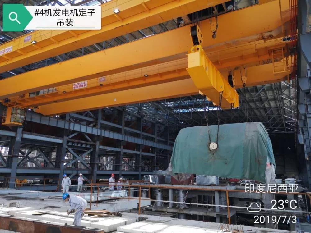 #4机组发电机定子长7.4米、宽3.6米、高3.6米,重101吨。为保障该发电机定子的顺利吊装,项目部提早部署,组织发电机定子吊装岗前测试,最终实现了发电机定子的顺利吊装。