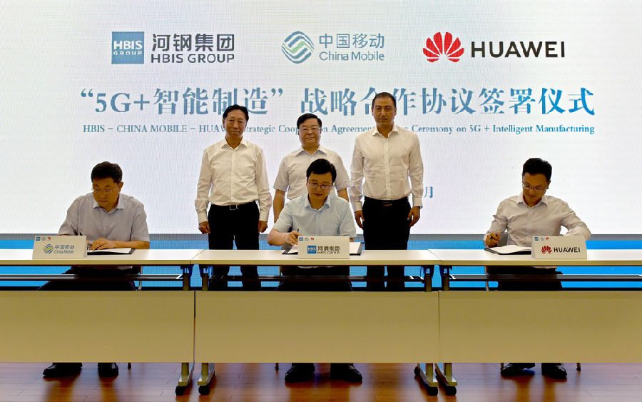 【中国铁合金网讯】7月18日,河钢集团、中国移动、华为公司在石家庄就联手打造钢铁行业“5G+智能制造”标杆签署战略合作协议。三方将基于河钢应用场景,成立联合研发机构,融合5G、人工智能、大数据、云计算等新一代信息技术,共建工业互联网平台,实现“5G+智慧工业园区、5G+智慧工业港口、5G+智能工业制造”三个领域的技术突破,促进钢铁制造向网络化、智能化、数字化转型,实现高质量发展。河钢集团党委书记、董事长于勇,中国移动通信集团副总裁、党组成员李正茂,华为公司中国地区部副总裁强华,共同鉴证签约。