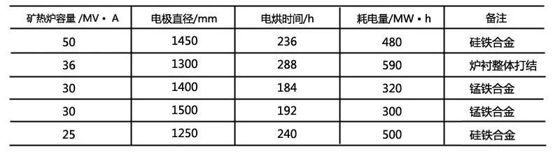 矿热炉新电极焙烧步骤及需要注意的问题(附5种直径炉型焙烧数据表)
