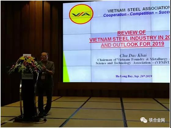 会长Chu Duc Khai 先生说到过去十年,平均每年国内生产总值增长6.25%,人均消费近54年也呈现增长态势,外资吸引总额从2015年145亿美元增长到2018年191亿美元。目前越南国内钢铁冶炼技术路线较多,规模大小不一。2018年生产情况: 粗钢产量达到1547.1万吨,同2017年相比增长了35%;成品钢产量达到2560.2万吨,同比增长16%;进口钢铁1436.8万吨,同2017年相比下降了4%;出口钢铁658.7万吨,同比增长41%。