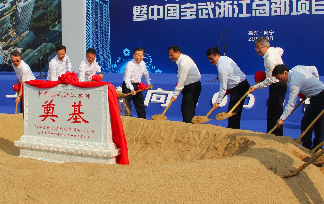 宝地资产党委书记、董事长王继明和海宁市委书记朱建军在奠基仪式上先后致辞。他们表示,中国宝武浙江总部项目从酝酿筹备到开工奠基,前后不到半年时间,见证和印证了嘉兴的气度、海宁的速度和宝武的力度。接下来,项目方一定“不忘初心、牢记使命”,努力将这一项目建成一个绿色、智慧、高效率、高质量的精品工程,并以中国宝武浙江总部为纽带,依托中国宝武钢铁生态圈的产业资源优势,立足嘉兴,深耕海宁,倾力打造产业聚集、功能完善、环境优美的世界一流综合性产业园区和活力新城区。