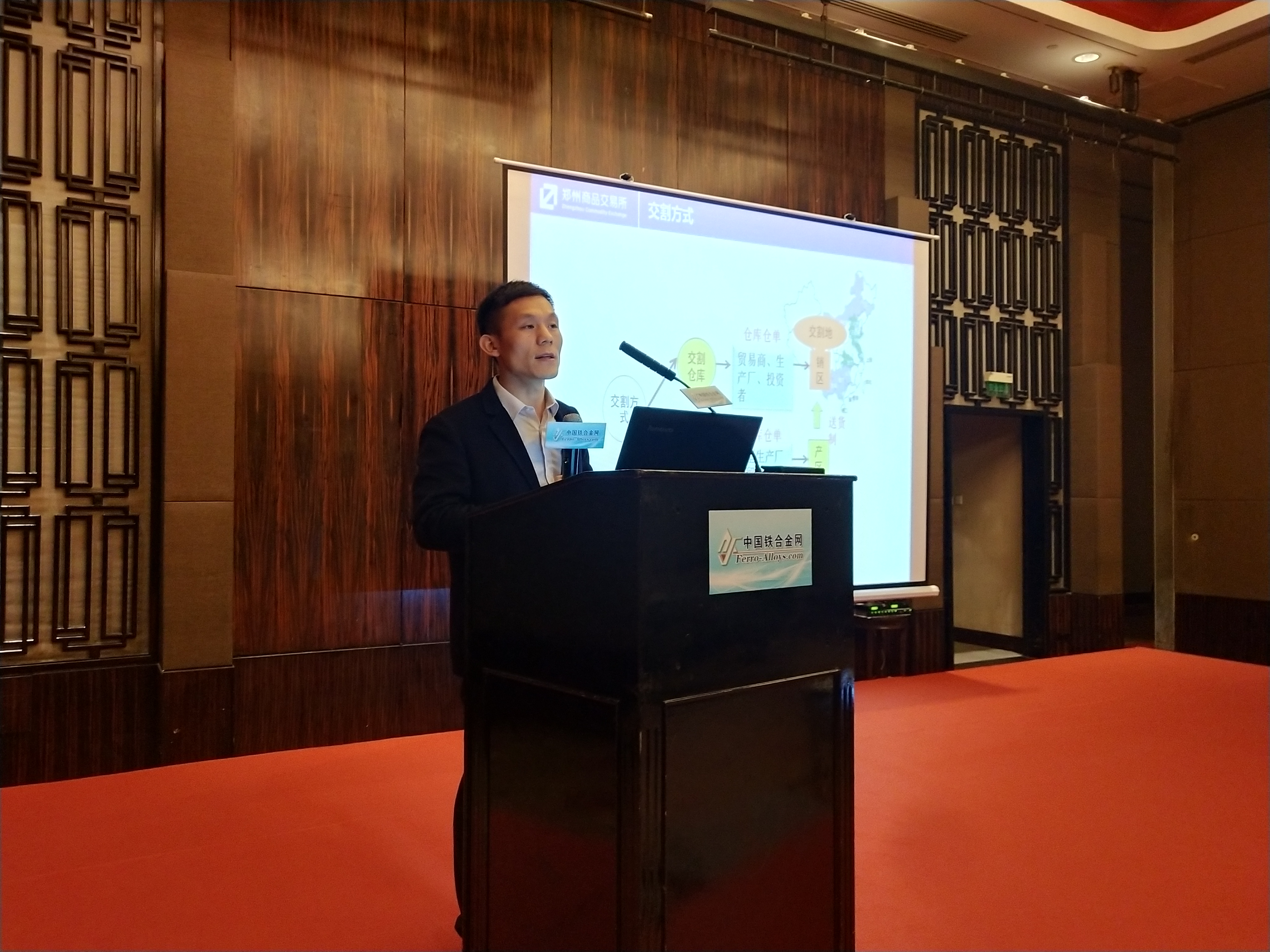 年会期间举办的铁合金期货现货市场论坛上,郑州商品交易所非农产品部高级经理袁伟杰先生做了《铁合金期货运行情况及硅铁规则修改征求意见》的主题报告,对硅铁、硅锰期货知识及规则进行了系统而详细的介绍,并分享了硅铁升贴水规则调整情况以及出库复检筛下物超标处理方案细则(征求意见),欢迎业内人士积极反馈意见。