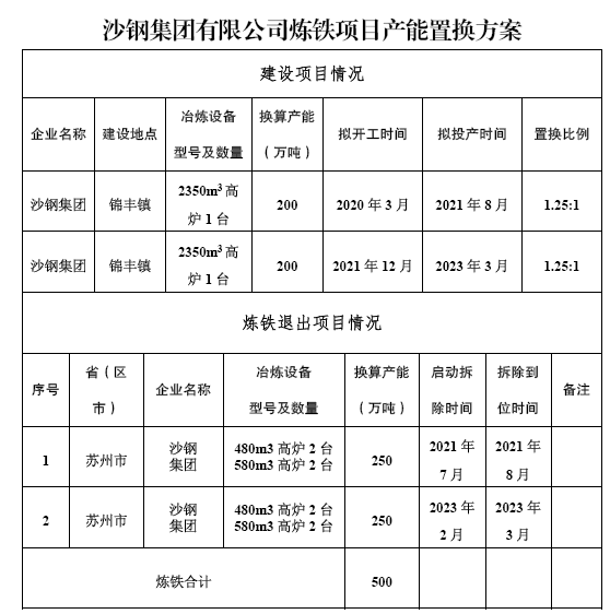【中国铁合金网讯】按照《国务院关于化解产能严重过剩矛盾的指导意见》、《国务院关于钢铁行业化解过剩产能实现脱困发展的意见》和《钢铁行业产能置换实施办法》要求,现将江苏沙钢集团有限公司炼铁项目产能置换方案予以公示,欢迎社会公众进行监督。公示期为2019年11月20日至2019年11月27日。如有异议,请在公示期内以书面形式向江苏省工业和信息化厅反映情况。联系电话:025-83398236(业务咨询)、025-69652843(驻厅纪检监察组)。