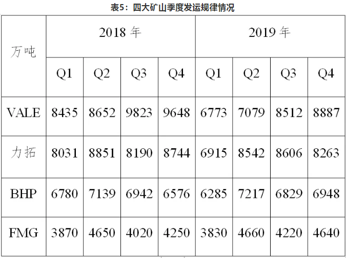 从季节规律来看,一季度,受天气因素影响,四大矿山发运量处于年内最低水平;二季度,随着天气的好转,供应量逐步回升,发运高峰期集中在下半年。