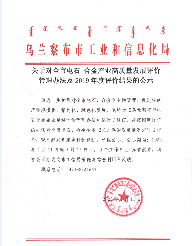 中国铁合金网讯:乌兰察布市电石、合金产业高质量发展评价管理办法(暂行)