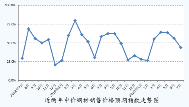 7月钢材批发市场单位销售成本预期指数、销售利润率预期指数分别为51.3%、41.2%,比上月分别下降1.1和9.8个百分点,反映经销商预期销售成本变化不大,销价和盈利情况不太乐观。