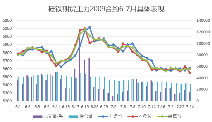 【期货行情】本周硅铁期货主力2009合约继续低位运行,周开盘价5,576,最高价5,650,最低价5,550,收盘价5,550,结算价5, 596,持仓量30,127,成交量83,196。