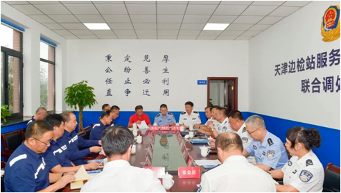 中国边检天津边检总站在天津港港口前沿设立服务诉求快速响应联合调处中心有力的促进了天津港建设国际一流大港的步伐。