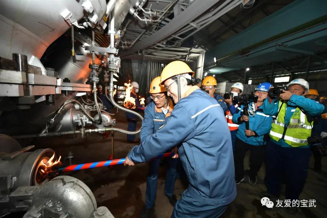 “85·9”精神薪火相传。宝山基地上一座大修高炉是四号高炉,为此专门从四号高炉取来了火种。点火仪式上,邹继新从四号高炉炉长徐辉手中接过火种,传递给二号高炉炉长居勤章,并为高炉点火,开启了二号高炉的新征程。