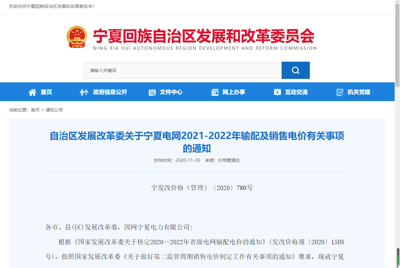 中国铁合金网讯:关于宁夏电网2021-2022年输配及销售电价有关事项通知