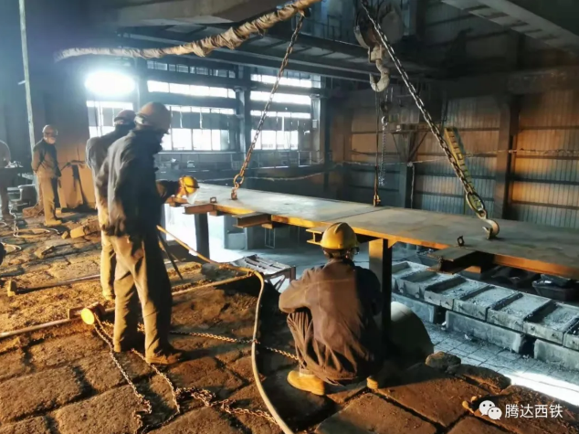 第一冶炼厂平台扩建工程主要针对捣炉车的有效作业空间和行车安全保障问题进行设计施工,充分考虑了扩建区域与炉前工艺设备的安全距离、炉台承载的最大负重力等诸多因素。在安全技术交底后,分厂机械维修工段分别在四台电炉5米作业平台外侧对接安装了钢制平台,实现了空间的有效利用。