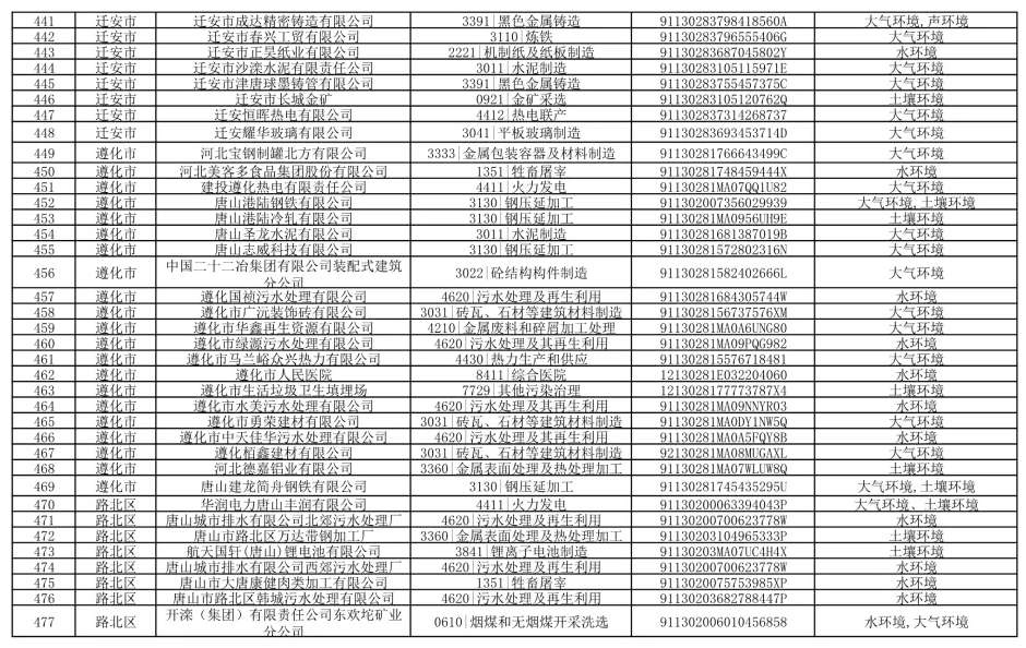 | 177 | 古冶区 | 唐山不锈钢有限责任公司 | 3130|钢压延加工 | 91130200754036552x | 大气环境、土壤环境 |