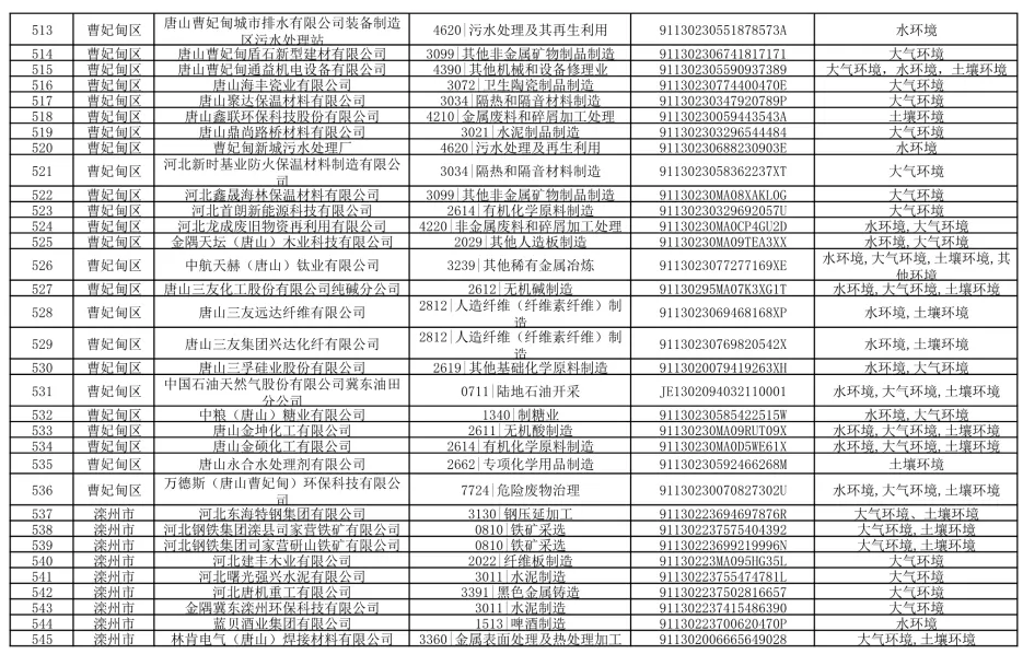 | 574 | 滦州市 | 唐山连创制钢科技有限公司 | 3130|钢压延加工 | 91130223674650798N | 土壤环境 |