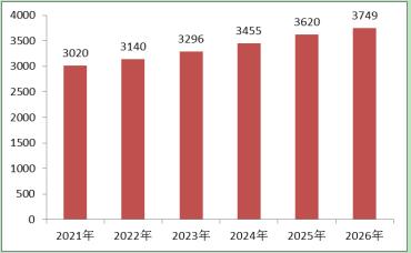图表:2021-2026我国不锈钢材产量预测(万吨)