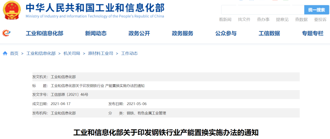 经商国家发展改革委、国务院国资委,现将修订后的《钢铁行业产能置换实施办法》印发给你们,自2021年6月1日起施行,请认真抓好贯彻落实。