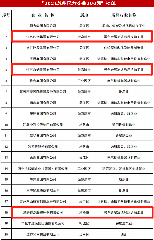 据了解,截至目前,苏州市共有民营企业71.8万家,占企业总数的90.2%,是科技创新、税收贡献、境外投资的主导力量。3家企业入围2021年《财富》“世界500强”,占全省75%;28家企业入围“2020中国制造业民营企业500强”、26家企业入围“2020中国民营企业500强”,上榜企业数分别位列全国城市第一和第二。