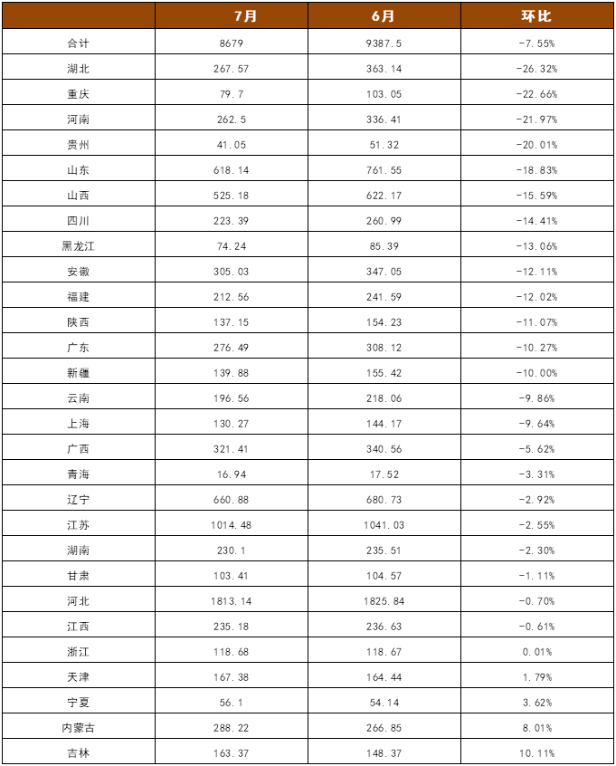 以7月份的减量水平来看,还不足以完成全年产量平控的目标,预计后期限产力度将继续加大。