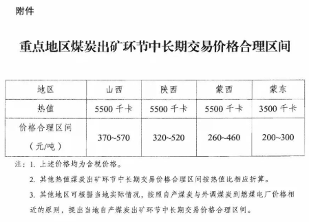 从多年市场运行情况看,近期阶段秦皇岛港下水煤(5500千卡)中长期交易价格每吨570~770元(含税)较为合理(晋陕蒙相应煤炭出矿环节中长期交易价格合理区间见附件),煤炭生产、流通、消费能够保持基本平稳,煤、电上下游产业能够实现较好协同发展。适时对合理区间进行评估完善。
