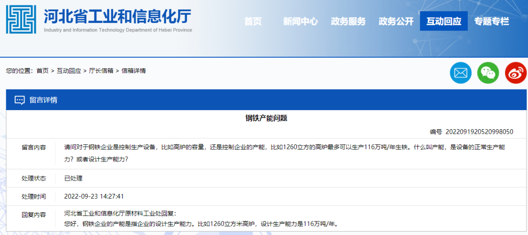 留言内容:请问对于钢铁企业是控制生产设备,比如高炉的容量,还是控制企业的产能,比如1260立方的高炉最多可以生产116万吨/年生铁。什么叫产能,是设备的正常生产能力?或者设计生产能力?