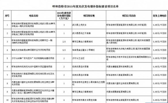 为加快推进新能源示范城市创建工作,我市积极向自治区和国家申请追加光伏年度开发指标。2015年9月底,国家下达我市20万千瓦竞争降价上网光伏指标。根据自治区发改委《关于下达2015年度光伏发电增补指标的通知》(内发改能源字[2015]1390号)中“各盟市在光伏发电项目确定上,积极鼓... |