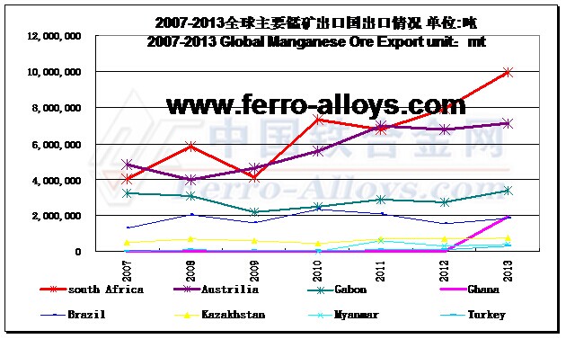 近十年全球锰矿出口分析:锰矿供应多元化将打破南非、澳大利亚垄断格局