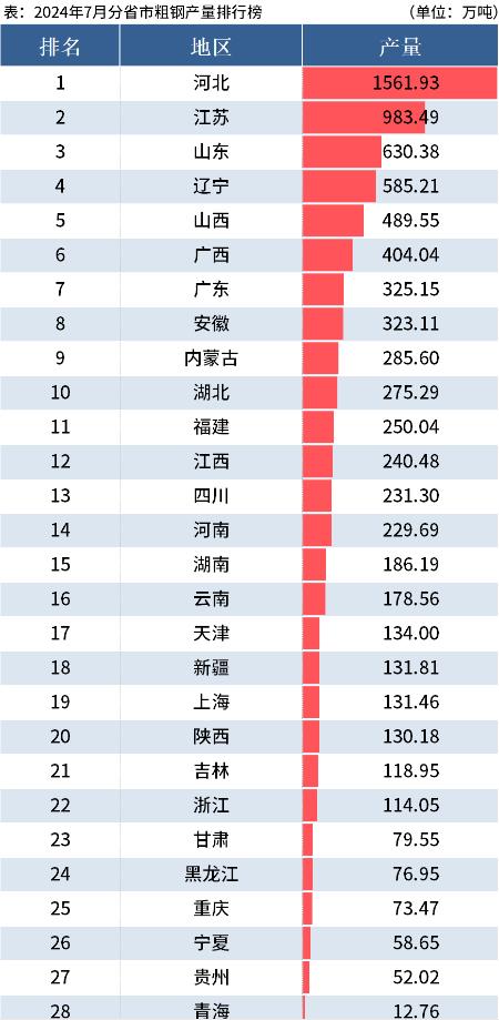 国家统计局:前7月全国分省市粗钢产量出炉