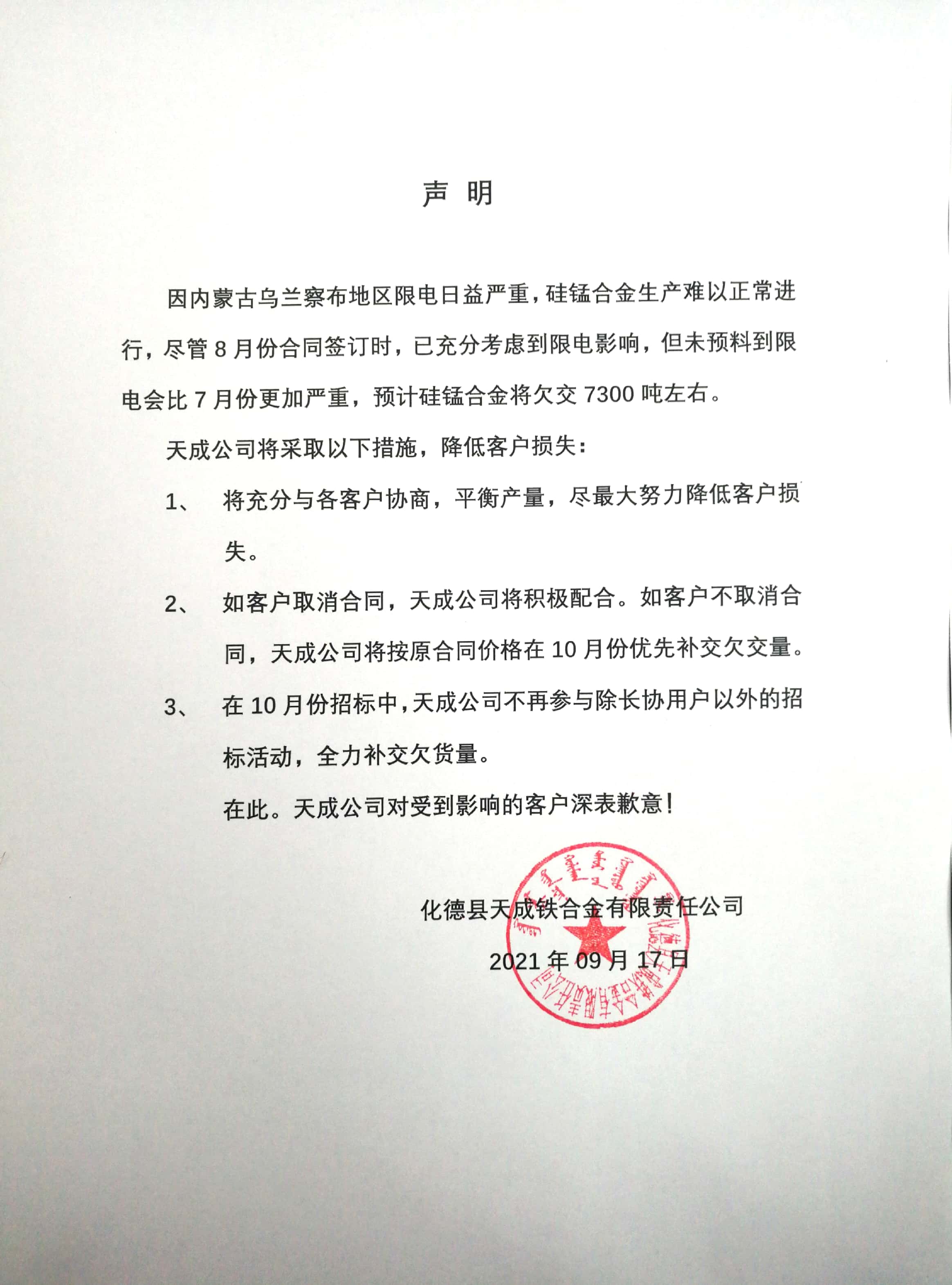 自2021年9月24日起,硅铁期货2201合约及锰硅期货2201合约的交易手续费标准调整为9元/手,日内平今仓交易手续费标准调整为9元/手。 |