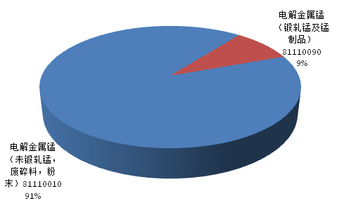 2016年7月中国锰及其制品(包括废碎料)出口29,247.97吨,其中电解锰占比为91%
