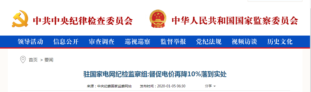 驻国家电网纪检监察组:督促电价再降10%落到实处