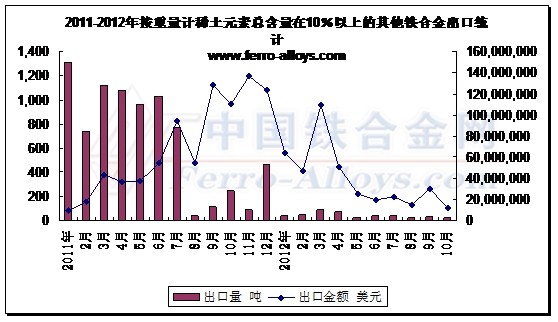 |  | 中国铁合金网讯:中国海关统计咨询服务中心(简称CCS)1月22日统计数据显示,中国2013年出口稀土矿石、金属及化合物22493吨,出口量较2012年增长38.3%,但远低于2013年的出口配额 |