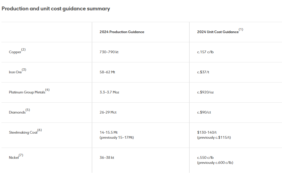 Anglo American plc production report Q2 2024