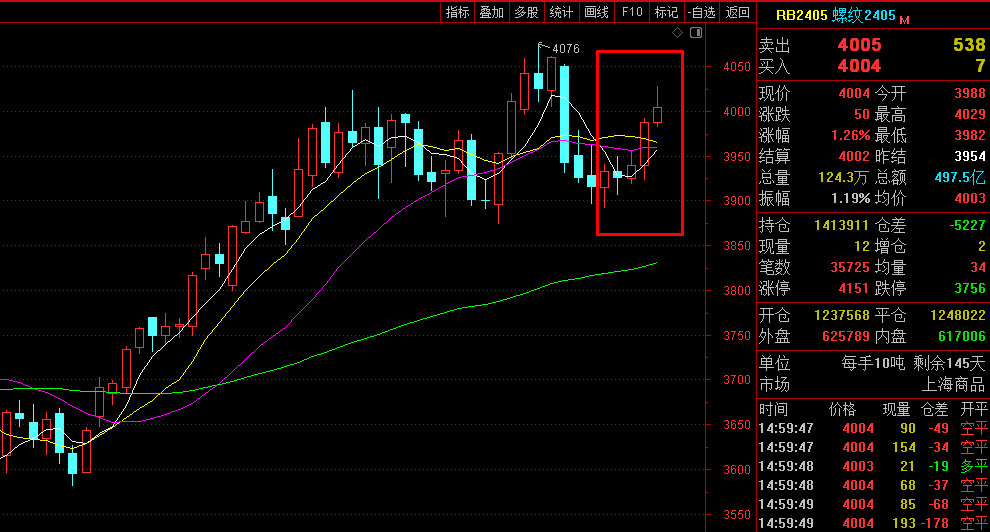 [Futures Market] The opening price of 2402 main contract was 6882, the highest price was 6954, the lowest price was 6766, the closing price was 6868, the settlement price was 6902, the position was 285936, the trading volume was 745755, and the transaction amount was 25.5693 billion yuan, an increase of 0.09%.