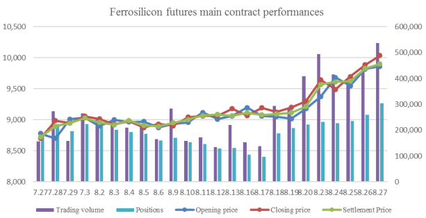 The 2109 ferrosilicon contract price on ZCE closed at 10290 yuan per ton on August 27. |