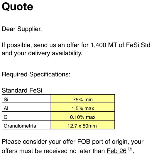 FOB quotation for Ferro Silicon Zirconium. |
