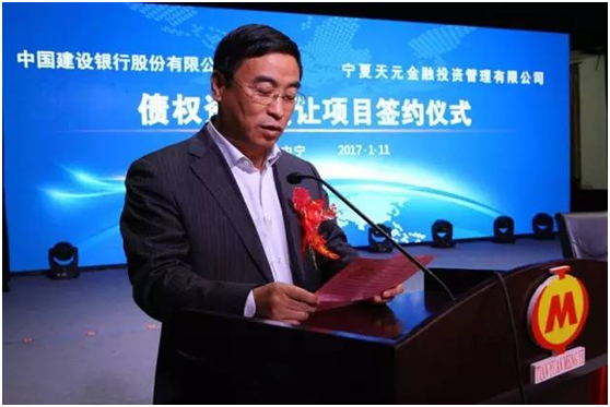 中国建设银行股份有限公司湖北分行副行长石章振、宁夏天元锰业集团董事长助理兼宁夏天元金融投资管理有限公司总经理代晓勇,分别代表标的转让方和标的受让方在签约文件上签字。