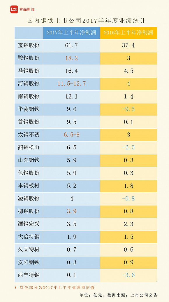 钢价的持续回暖,催生了国内钢铁上市公司半年业绩大幅提升。
