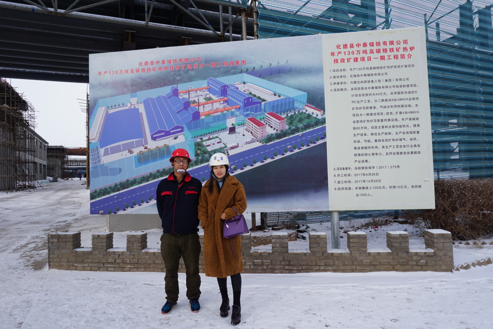 2017年11月25日,零下十几度的气温,大雪纷飞,然而园区内春意盎然。中国铁合金网走访化德县中泰镍铁有限公司,市场部余经理与中泰董事长孙占军进行会谈。