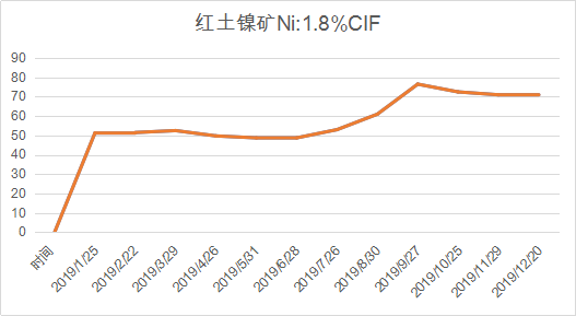 2019年年初,受到巴西淡水河谷矿坝坍塌事故影响,1月镍矿价格相比去年12月略有上涨,但幅度不大。从2月到6月,镍矿价格相对稳定。自7月开始,菲律宾开始进行矿业审查,镍矿价格开始持续大幅度地增长。9月,印尼政府确认,从明年起,将禁止镍矿出口。这使得镍矿价格进一步拉高,到9月底达到高峰。尽管10月诺里尔斯克镍业发生矿山事故,且印尼暂停了镍矿出口,但随着事故影响消退以及印尼恢复镍矿出口,其影响逐渐消退。从整体看,对镍矿价格影响不大。尽管本年度有多个矿商计划将重启镍矿生产,但由于印尼是全球最大的红土镍出口商,其供应缺口难以弥补。因此镍矿价格在今年处于高位,预计明年很难出现回落。