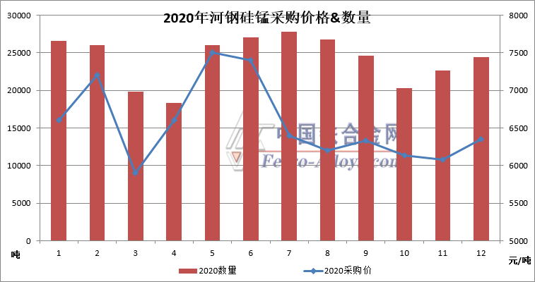 河钢集团12月硅锰6517招标价最终敲定为6350元/吨,较之二询价格再度加价70元/吨,较上月招标价上涨了270元/吨,招标量24400吨。具体采购价量价关系如下: