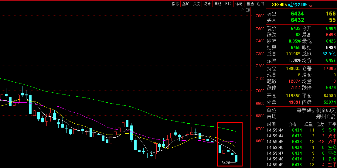 期货端:本周2405主力合约开盘价6566,最高价6570,最低价6426,收盘价6432,结算价6458,持仓量199833,成交量441616,成交金额143.579亿元,跌幅2.13%。