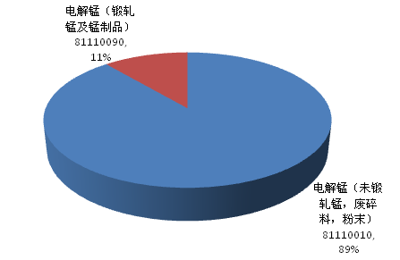2015年8月中国锰及其制品(包括废碎料)出口21,954.011 吨,其中电解锰占比为89%