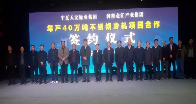 河南金汇不锈钢产业集团和宁夏天元锰业集团签署年产40万吨冷轧不锈钢制品项目合资合作协议